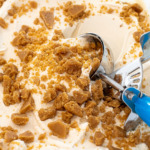 - Stir in toffee: After the ice cream is done, sprinkle in the homemade toffee, and stir. Add some to the top before freezing. Next, wait (im)patiently until it’s frozen, and enjoy!