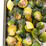 These Roasted Garlic Brussels Sprouts are tossed with lemon juice, Parmesan cheese, and garlic and roasted to a tender, crispy perfection. A quick and easy side dish that can be made in less than 30 minutes!