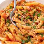 This Pasta with Vodka Sauce is rich, creamy and loaded with flavor! Best of all this dish is ready in under 15 minutes! In the time it takes to boil your pasta, your sauce will be ready! This recipe is the perfect meal for a busy weeknight!