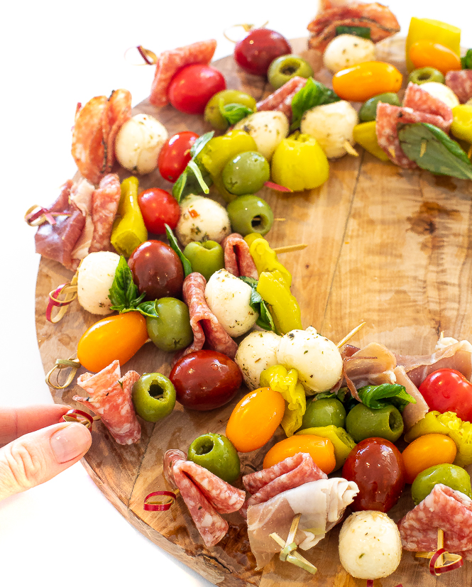 This Christmas Antipasto Wreath is a perfect, beautiful appetizer for this year's holiday parties! With ingredients that are bursting with flavor, this holiday take on antipasto is sure to please.