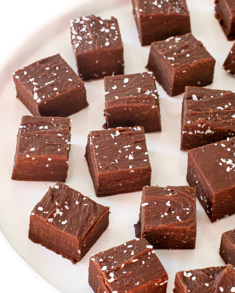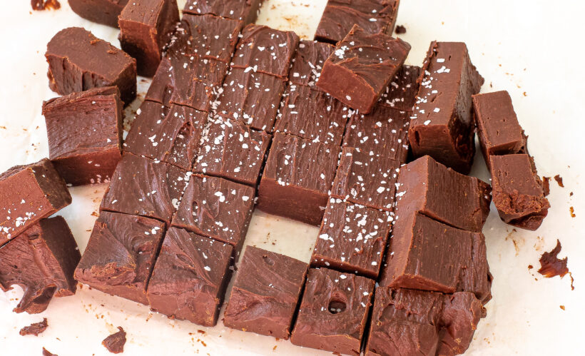 Creamy 5 Ingredient Chocolate Fudge with Sea Salt and Cinnamon is super easy to make and takes only 5 minutes of cooking time! No candy thermometer required! These indulgent bite-sized delights are perfect to give as gifts over the holidays or Valentine’s Day, or whip up a batch for a cold treat in the summer!