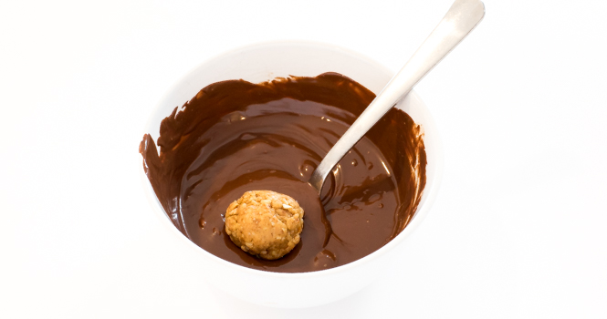 - Take the truffles out of the freezer and dip each ball in the melted chocolate.