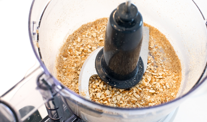 - Add pretzels to the same food processor and pulse until ground. Add to the large bowl with the almonds.