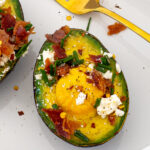 Baked Eggs in Avocado is a delicious and nutritious breakfast that combines creamy avocado with protein-rich eggs, crispy bacon and tangy feta! Perfect for a satisfying breakfast or brunch!