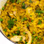Arroz con pollo, aka rice with chicken, is a one pot, Latin-inspired dish that creates a super flavorful and wholesome meal in no time! Plus, you will learn how to make your own homemade sofrito. The sofrito is what makes this the best arroz con pollo recipe ever!