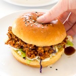 I like to serve my Asian Sloppy Joe’s with slaw on a brioche bun with a drizzle of Spicy Mayo. You can also reserve extra sauce on the side for dipping!