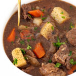 Yes! Set your Instant Pot to SAUTE mode, and prepare as directed in the recipe card instructions or above under “How To Make It.” However, when you get to the step when you add the beef back to the pot with the veggies, herbs, and stock, switch your Instant Pot to pressure cook or manual on HIGH, seal the vent, and secure the lid. Cook for 60 minutes, serve, and enjoy!