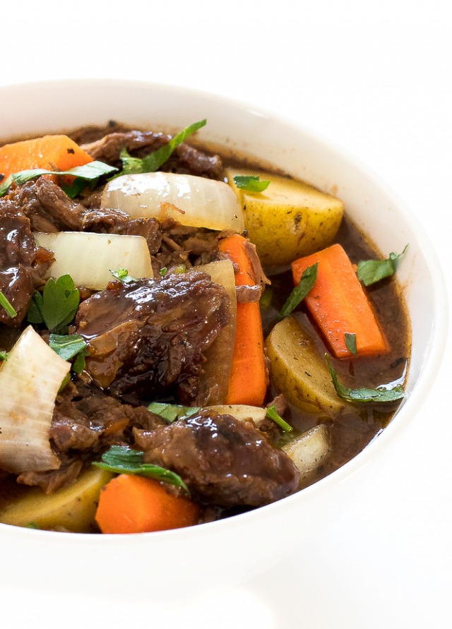 Slow Cooker Guinness Beef Stew: Super tender melt in your mouth chuck roast cooked low and slow for 8 hours with carrots, onions and potatoes! Comfort food at it’s finest!