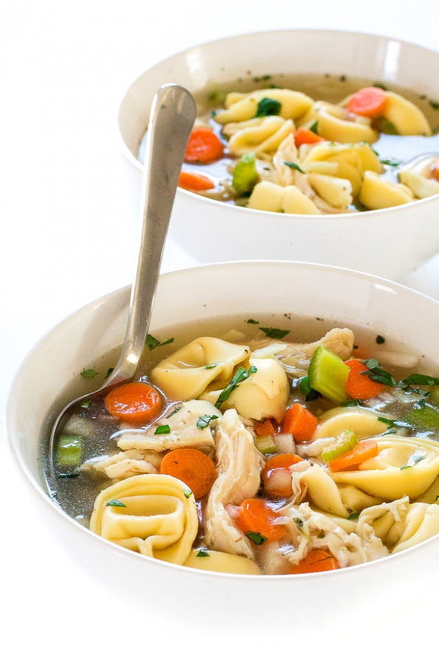 Slow Cooker Chicken Tortellini Soup: Cooked low and slow for 6 hours, this soup is super comforting and perfect for winter!