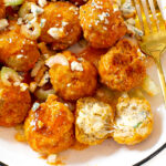 These Blue Cheese Stuffed Chicken Meatballs are the perfect combination of savory and spicy, with a creamy blue cheese surprise hidden inside each bite! Baked to perfection and tossed in a tangy buffalo sauce, these meatballs are a deliciously satisfying appetizer or main dish.
