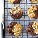 The two different cookie halves of these brookies cookies are distinctly delicious. The brownie cookie portion is rich and chocolatey just like a brownie, soft and crisp around the edges. As for the chocolate chip cookie, they are thick and fluffy and loaded with tons of chocolate chips! They are also incredibly soft on the inside and firm on the edges.