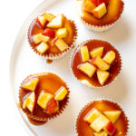- Top each cheesecake with caramel sauce then top with a couple of apples on top!