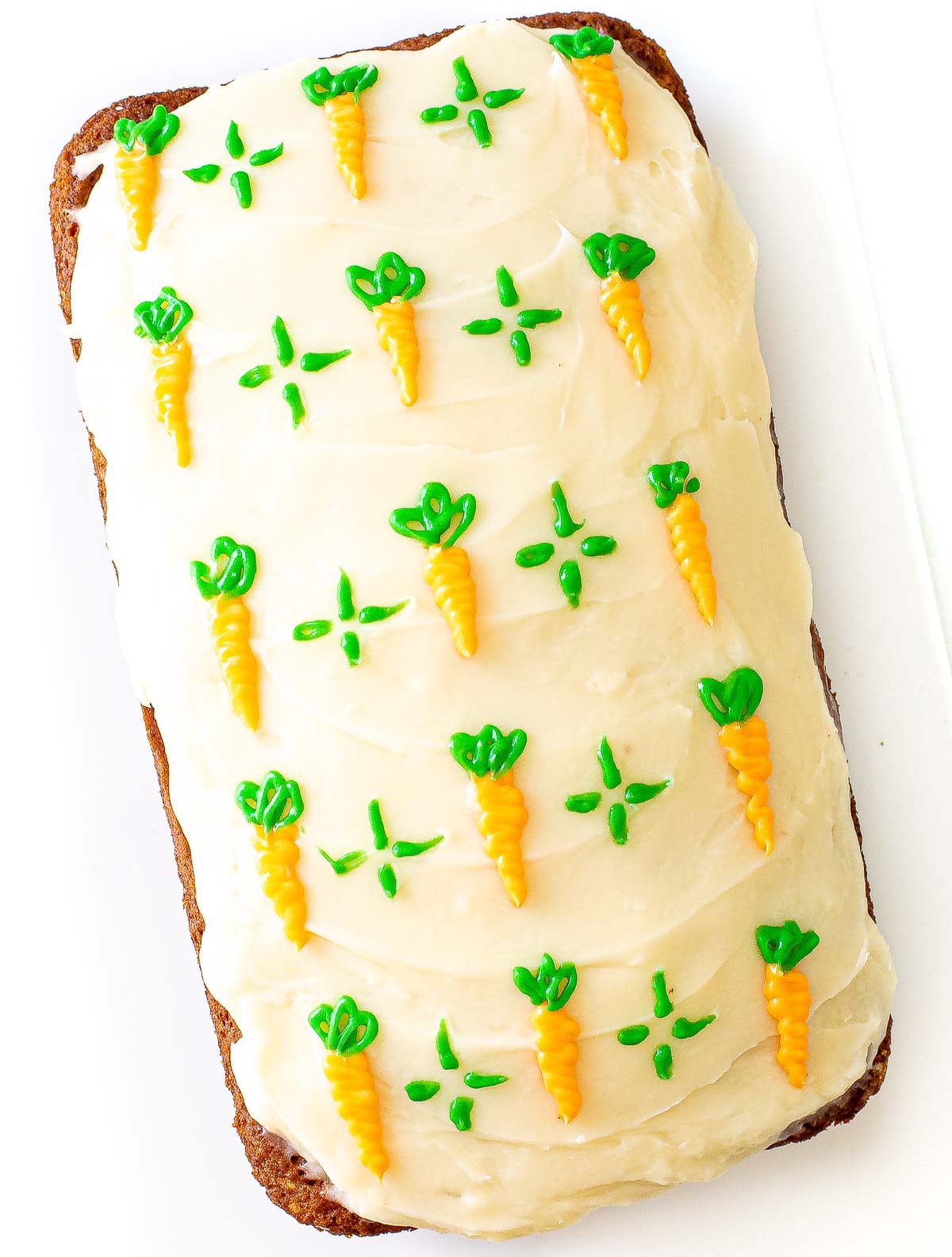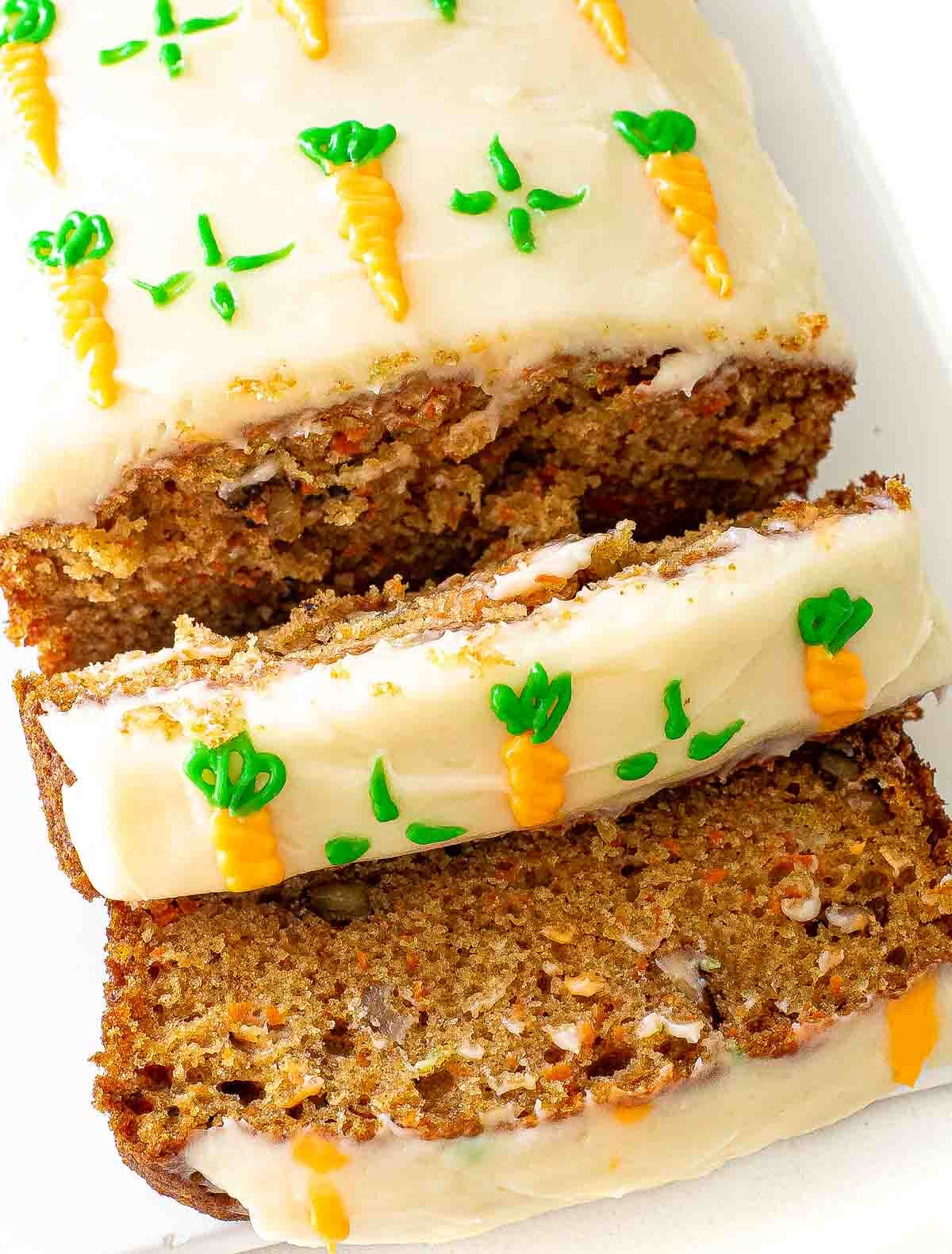 I love my carrot cake loaf smothered in cream cheese and loaded with walnuts for a little crunch. It’s the perfect way to celebrate Easter and the beginning of Spring!