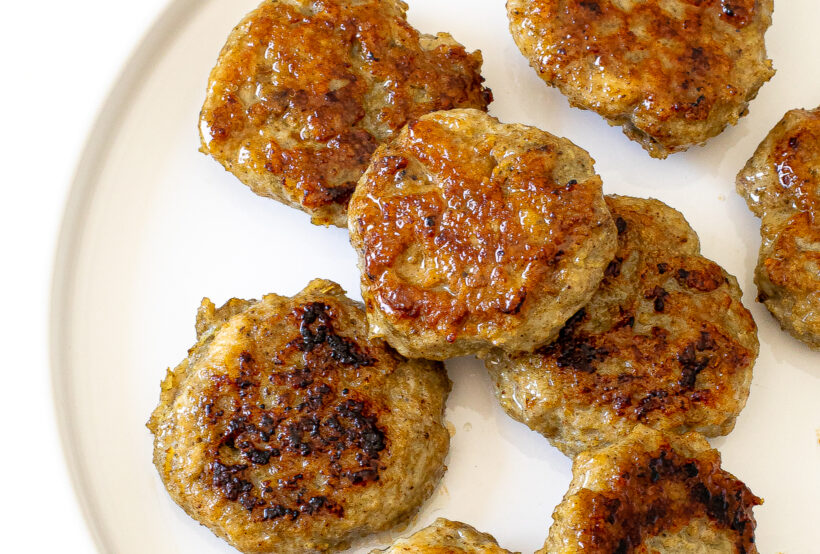 Start your day off right with homemade Chicken Breakfast Sausage! Made with chicken, a handful of spices, and just a touch of maple syrup, this recipe is easy and delicious. Make them ahead of time so you can eat them on the go or enjoy them with your favorite pancakes, in breakfast sandwiches, or even in a breakfast casserole!