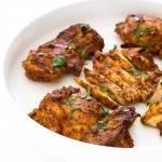 Absolutely! This recipe can easily be made on the grill as full thighs or breasts, or skewered, after marinating of course. Grill until golden brown, and cooked through (about 10-15 minutes). You can also throw some sliced veggies like red onion, bell peppers, and mushrooms into your marinade and grill them, too. (Best for kebabs.)