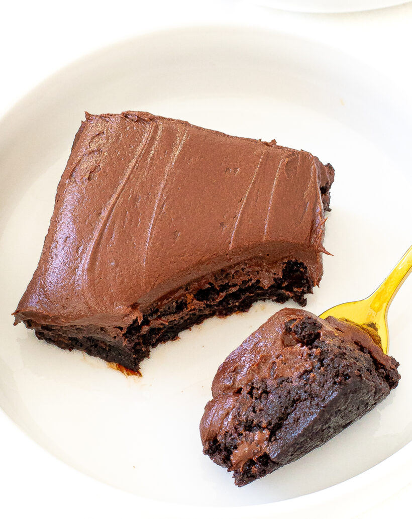 Oh my goodness! These brownies look so rich, decadent and perfectly fudgey! Such a great idea to add soy to the frosting. Love how thick and creamy it is!