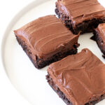 These Fudgy Chocolate Frosted Brownies topped with a thick layer of Chocolate Buttercream Frosting are the ultimate brownies for chocolate lovers! Share these Chocolate Frosted Brownies on all occasions: birthdays, the holidays, and Valentine’s Day!