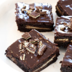 These ultra fudgey Chocolate Mint Brownies have andes mint candies in the brownies as well as a rich chocolate ganache on top! They are super rich and chocolatey. Perfect for mint and chocolate lovers on St Patrick’s Day!