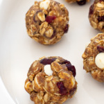These energy bites aren’t just for nursing moms though! Kids and adults love these energy balls. They taste like one of those delicious granola bars you buy at the store, but without all of the added preservatives and sugar. Plus, in little ball shapes they are way more fun to eat! I’ve been wanting to make an energy bite recipe with dried fruit and settled on cranberries. Dried cranberries are the perfect combination of tart and sweet, and go so well with the white chocolate in this recipe.