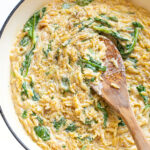 This Creamy Boursin Orzo is a rich one-pan wonder that’s packed with flavor! The orzo cooks right in a savory mix of broth, milk and Boursin cheese soaking up every bit of that creamy goodness. It’s an easy weeknight side—or even a meatless main—you’ll want to keep on repeat.