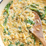- Orzo – Cooks up creamy and tender, absorbing all the yummy flavors in the pan.