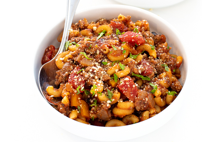 This super easy goulash recipe turns simple ground beef into a comforting classic that everyone in the family is sure to love. I like to brown up my ground beef first before adding it to the crockpot, which is the first step in building lots of flavor. Along with fire roasted tomatoes and the perfect seasonings, this goulash turns out so good!