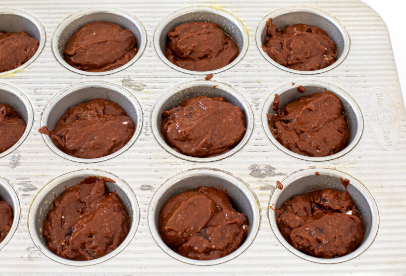 • Preheat oven to 400 degrees. Grease a standard size muffin pan or line with paper liners and set aside.