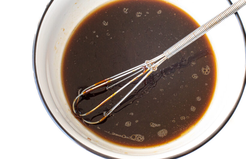 - Add the oyster sauce, brown sugar, soy sauce, dark soy sauce and water to a small bowl and whisk to combine, set aside.