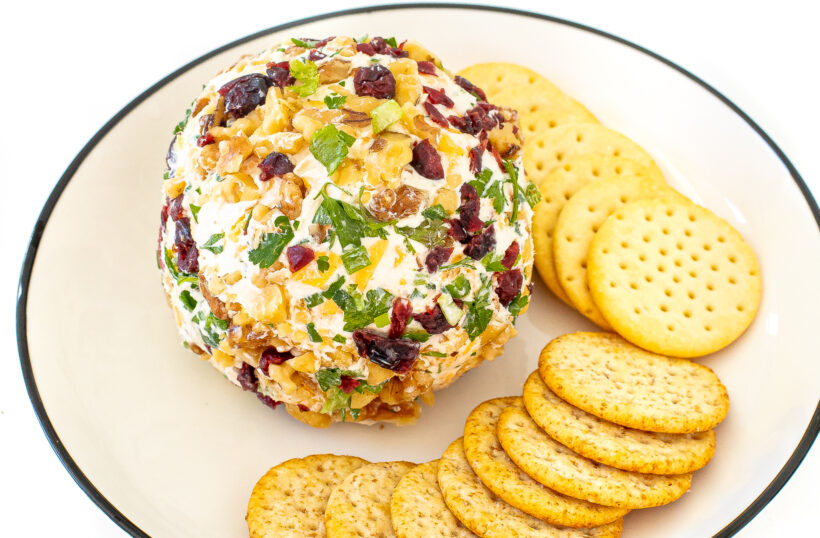 This Easy Cheese Ball recipe is a show-stopping appetizer that’s perfect for any occasion! Made with a satisfying blend of cheese and seasonings and rolled in a festive mix of dried cranberries, chopped nuts, and fresh herbs, it’s packed full of flavor and texture. Serve it with crackers and watch it disappear in no time!