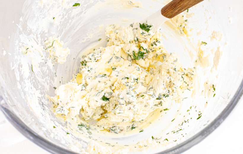- Whip and season: Add butter and cream cheese to a stand mixer with the whisk attachment. Whip on medium-high speed until light and fluffy. Stir in fresh herbs and roasted garlic, then taste and season with a pinch of salt and pepper.