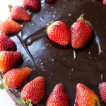 To serve, I like to put strawberries and a light dusting of powdered sugar on top of the ganache.