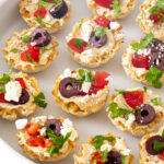 I’m always on the search for quick and easy appetizers for entertaining, and these Greek Hummus Phyllo Bites fit the bill! They are super easy to make, require no cooking, and are surprisingly healthy! (That’s a win-win-win!) They make the perfect appetizer for game days, potlucks, parties, and get-togethers with family or friends.