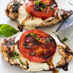 This Chicken Caprese recipe features juicy grilled chicken breast topped with mozzarella cheese, tomato, basil, and a homemade balsamic reduction. It’s everything you love about caprese salad, but turned into a full, filling meal!