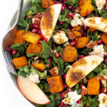 This Fall Harvest Salad recipe is a vibrant and nutritious salad featuring crisp greens, roasted vegetables, and autumn fruits including apples and pomegranates. Delicious enough to feed a crowd and beautiful enough to serve as a showstopper on the table!