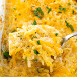 This is one of my favorite side dishes. I love how you can use it for breakfast for with any meal. So cheesy and delicious, it’s one of my favorite things to bring to a potluck!