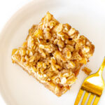 These Healthier Apple Crumb Bars taste just like a warm apple pie, but they’re better for you! Featuring spiced apples and a crispy crumb topping, the bars are made with maple syrup and oats for an extra wholesome treat! They’re perfect served with a scoop of vanilla ice cream for a snack, dessert, or even breakfast.