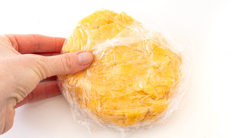 - Remove the dough from the stand mixer and form it into a disc. Wrap it in plastic wrap then refrigerate for 1 hour.
