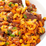 This dish takes beefaroni from your childhood and gives it a huge comfort food upgrade! We can’t get enough of it.