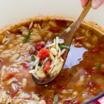You all know how much I love soup! This time, I made you one of my favorites — Italian Ham and White Bean Orzo Soup. It’s a super simple Italian soup loaded with flavor thanks to the ham, garlic and fire roasted tomatoes!