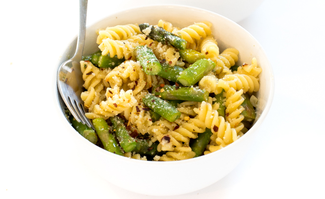 This lemon asparagus pasta recipe is vegetarian-friendly and made with just a handful of easy ingredients. Perfect for a light lunch, easy dinner, or side dish!