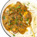 - Saute mushrooms: Add the remaining 2 tbsp of butter to the same skillet. Sauté the mushrooms, for 4-5 minutes or until they start to brown and soften. Add gravy to mushrooms and return to a simmer. Season with salt, pepper and balsamic vinegar.