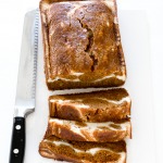 I love serving this pumpkin bread warmed up! I recommend microwaving it for 30 seconds or heating it in a skillet before serving. Below are some fun toppings to serve on top of pumpkin bread slices.