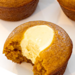 I have to say these pumpkin muffins do not disappoint! We love how the muffins look at Starbucks so instead of swirling the cream cheese into the batter (like I do with my loaf) I pipe the filling in the center instead. You can absolutely do either!