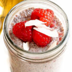- Serve the chia pudding with more raspberries on top for garnish and optional coconut flakes! Enjoy!