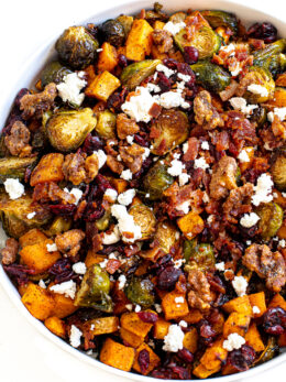 Roasted Brussels Sprouts and Sweet Potatoes