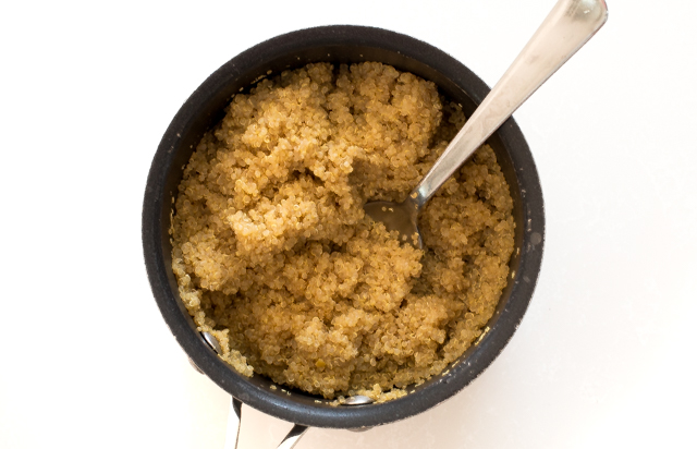 If you have vegetable stock on hand, use it to boil the quinoa with. Non-vegans can use chicken stock to add more flavor.