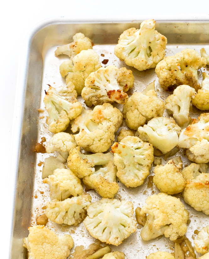 • Don’t overcrowd the pan: Make sure to choose a pan that is big enough for the cauliflower. Overcrowding will cause it to steam and not crisp up, which is what we don’t want!