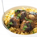 The Salisbury Beef Meatballs are loaded with flavor! I add in panko breadcrumbs, fresh parsley, ketchup, dijon and Worcestershire sauce. Then I simply brown the meatballs in a hot skillet and let them cook the rest of the way in the gravy. This results in a melt in your mouth, juicy meatball!
