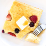 These Sheet Pan Pancakes are ridiculously easy and taste absolutely delicious! Perfect for serving a crowd! All you need is 20 minutes of prep time then let the oven do the rest! No more flipping!
