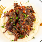 If you want to take this pot roast a step further I have included my recipe for beef gravy to serve on top of your pot roast meat. It’s totally optional but is amazing on top of the pot roast and vegetables! If you are lucky enough to have some leftovers, serve on a roll with some melted cheese and gravy or au jus for dipping. It is AMAZING!